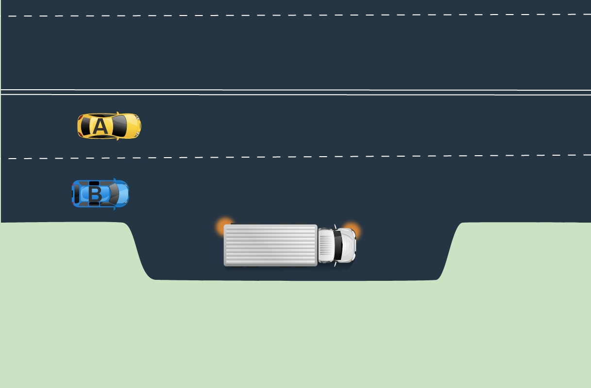 Bild 2: Bil B måste lämna företräde åt bussen