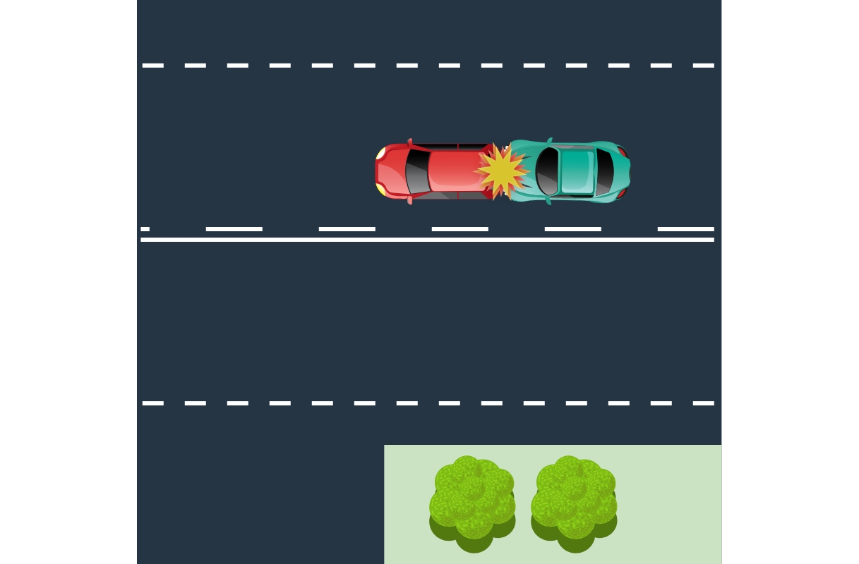 Om du exempelvis inte har blinkat innan du svängt eller plötsligt har bromsat utan någon giltig anledning, kan du ha större delen av skulden till att ha blivit påkörd bakifrån. Till exempel; om den röda bilen i det här exemplet (bild 1) plötsligt stannade för att föraren precis insåg att hon eller han borde svängt vänster här, då kan det inte anses vara föraren av den gröna bilens fel.