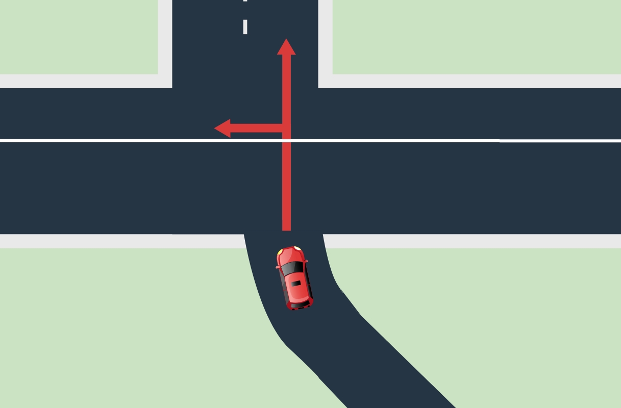 Bild 8: Du får korsa den heldragna linjen när du kör ut från privat egendom