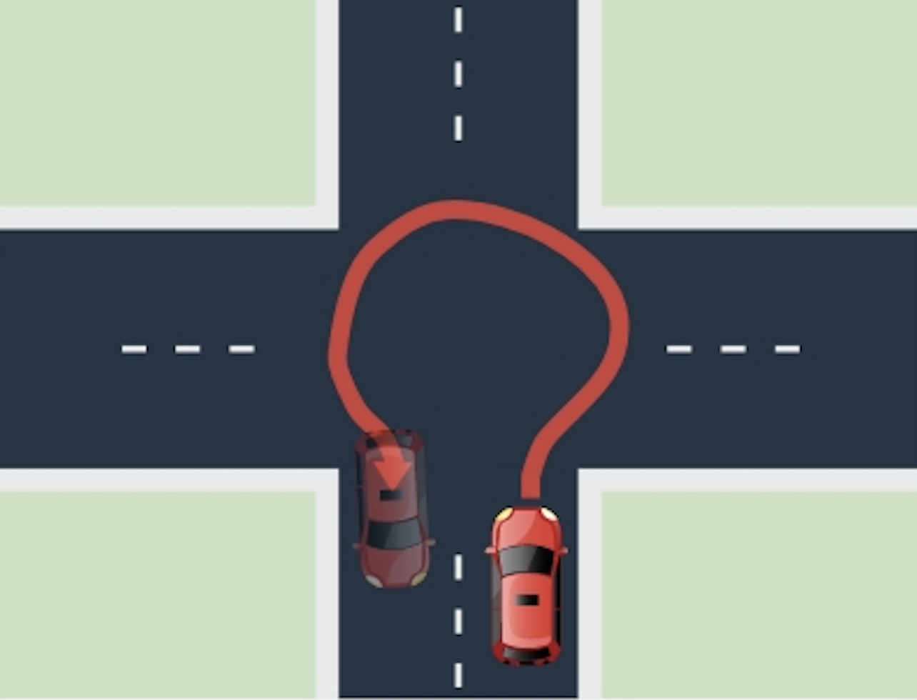 - En U-sväng (bild4 ) är när du kör i motsatt riktning, ungefär som i en rund cirkel.